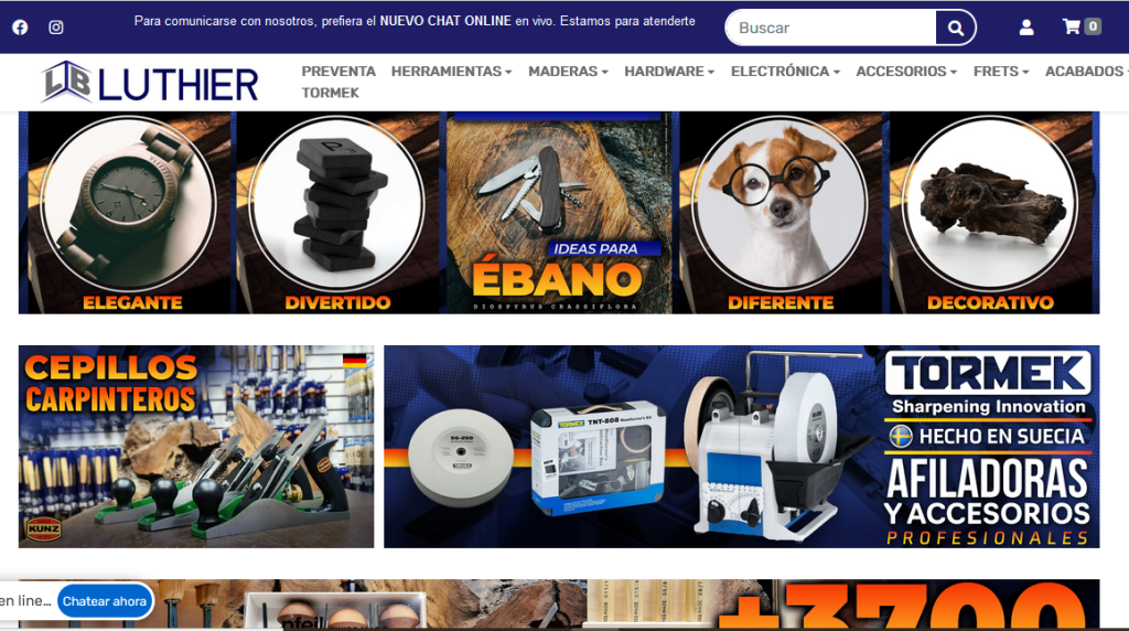 Empresa basada en Chile, de importación y venta de herramientas y maquinaria para la luthería (construcción de instrumentos musicales) y otros oficios manuales. Con más de 12 años de trayectoria con una tienda física, durante la pandemia deben convertirse por completo a la venta online.